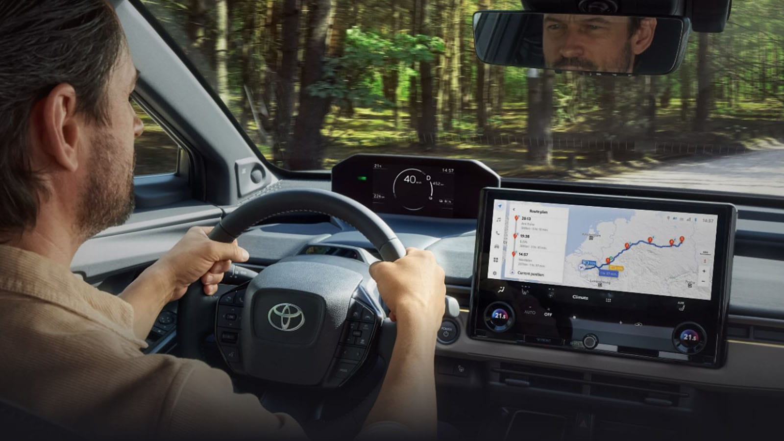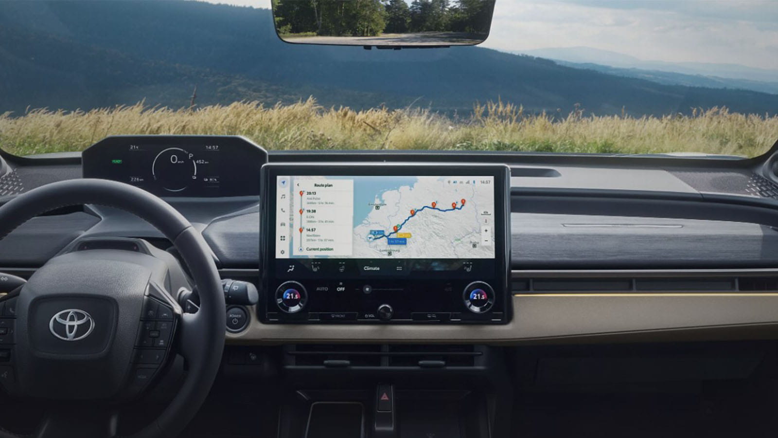 Intuitivni Toyota bZ4X Touring ponuja napredno digitalno izkušnjo, ki vam omogoča, da ostanete vedno povezani in pod nadzorom. Digitalni kokpit zagotavlja enostavno upravljanje vseh funkcij vozila ter jasen pregled ključnih informacij med vožnjo.